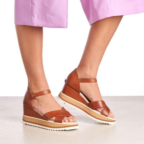 LLOYD präsentiert Keilsandaletten aus Glattleder, die mit einer widerstandsfähigen und schockabsorbierenden Sohle begeistern. Die Damen Sandalen verschaffen einen luftigen und leichten Look an sonnigen Tagen. Durch die abriebbeständige Gummisohle wird der Auftritt beim Gehen ideal abgefedert. Die innenliegende Sohle aus Leder führt zu einem hohen Wohlfühlpotenzial. Mit dem moderaten Keilabsatz bietet der Sommerschuh hohen Tragekomfort und Stabilität. Für ein angenehmes Tragegefühl und eine elegante Optik sorgen der Schnallenverschluss und das weiche Glattleder. Die ledergefütterten Sommerschuhe sind atmungsaktiv und bequem. Das Modell verfügt über eine Extralight®-Sohle, sodass es besonders leicht und flexibel, sowie rutschfest und schockabsobierend ist.