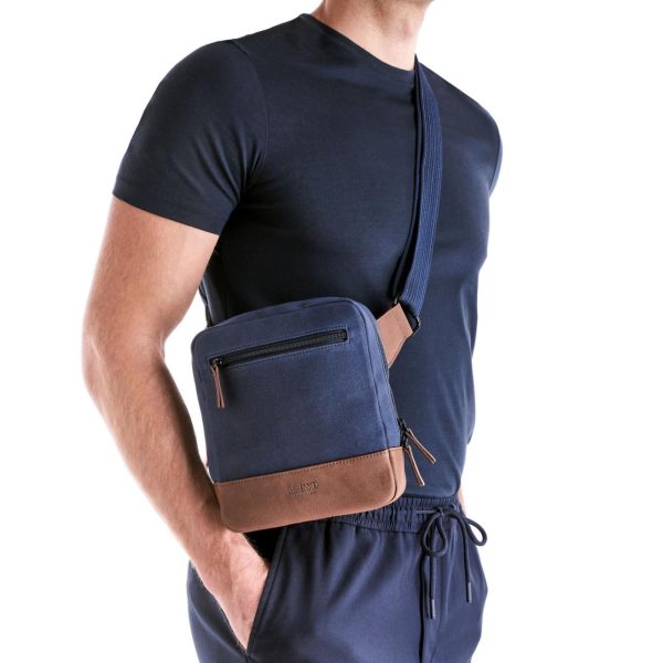 Der moderne dunkelblaue „CROSSOVERBAG“ ist Ihr idealer Alltagsbegleiter. Die Tasche verfügt über mehrere Steckfächer, Stiftehalter und einen Schlüsselkarabiner. Kleinere Details vervollständigen das Gesamtbild und runden den Look ab.
